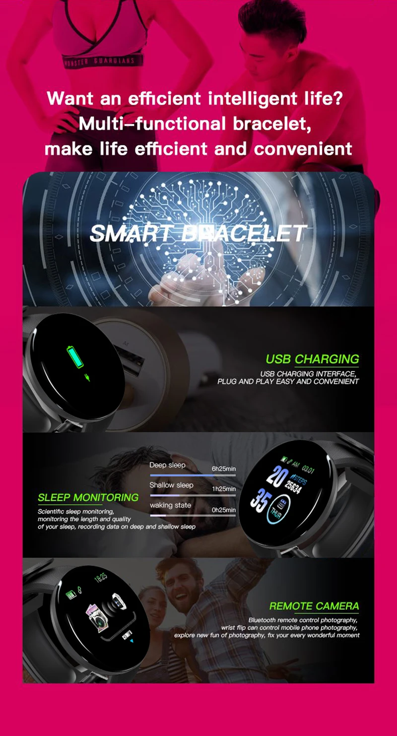 D18 femmes hommes Sport montre montre intelligente Fitness Tracker tension artérielle moniteur de fréquence cardiaque horloge Smartwatch Bracelet étanche
